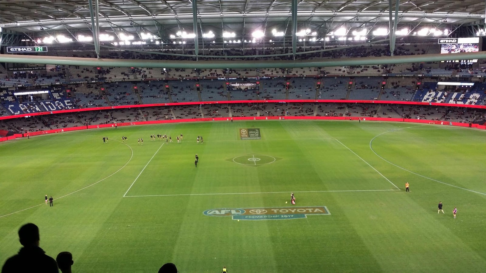 Yesterday, we drove to Carrum and using our Myki travel cards, caught the train from Frankston into Melbourne. We were well rugged up against the bitingly cold wind and for a couple of hours roamed around the Queen Victoria Markets before hopping on a tram to Docklands, where we bought tickets to watch the Essendon/North Melbourne game at Etihad Stadium. As it was our first time there, we decided we'd buy the best seats available but were informed that only single seats were available on level 2, so we bought general admission tickets on level 3. As the game progressed, we could see that there were many unoccupied seats on level 2 so wondered why we were unable to purchase a couple of them....however, we had a very good view from where we sat, were very impressed with the stadium and were very happy with the Essendon win. After the game had finished, we crammed onto a crowded tram to Flinders Street station and squeezed onto a crowded train for the trip back to Carrum. The first stop was Richmond where hordes of football fans from the MCG game managed to somehow squeeze themselves onto the already packed train! As most of the passengers appeared to be either Essendon or Melbourne fans (both teams had won their games), the atmosphere was friendly, so even though we stood for much of the fifty minute journey, we didn't mind too much.