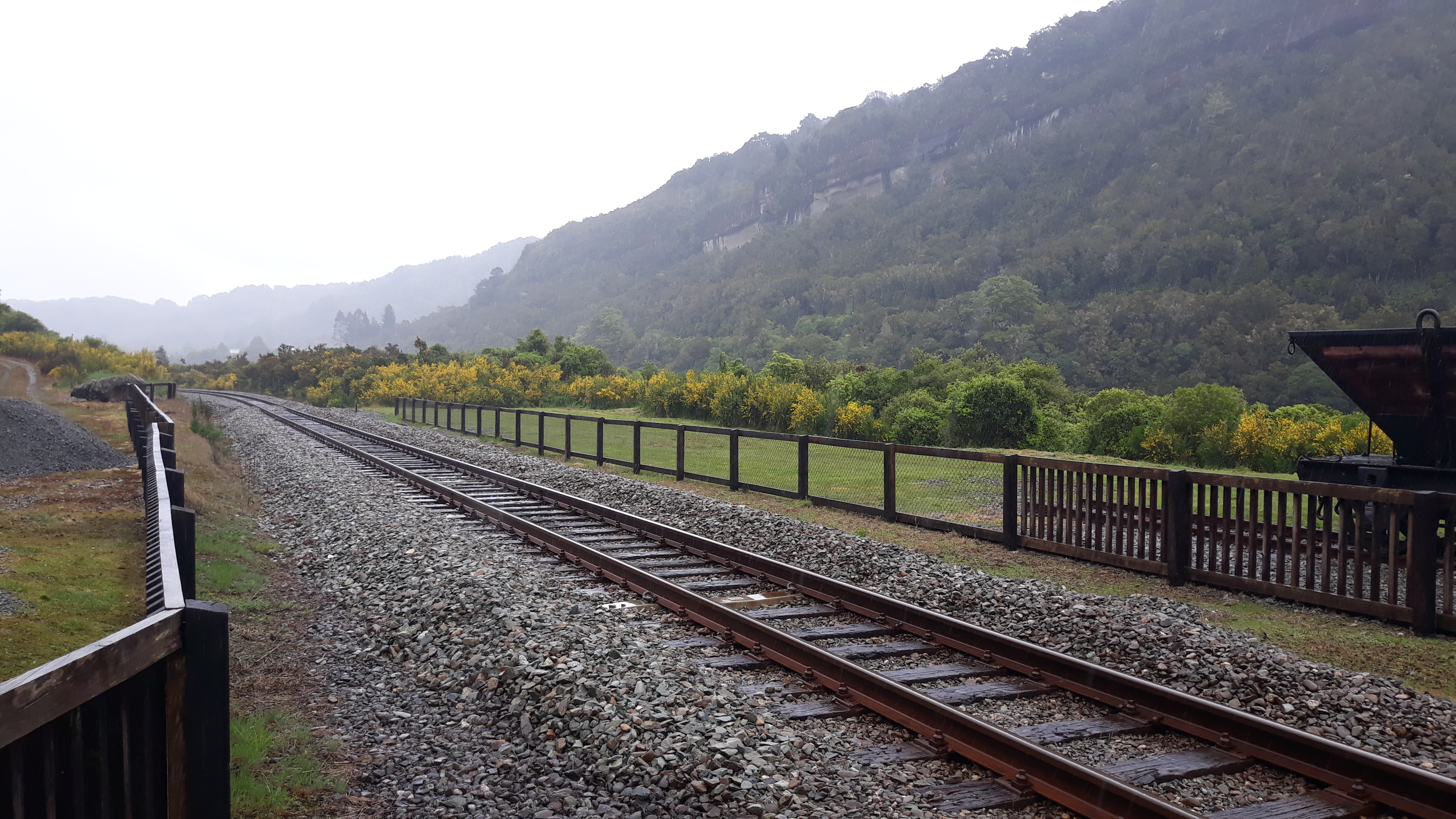 We left Greymouth at 9ish, it was raining and 14 degrees. First stop today was at the Brunner Mine Industrial Site, a former coal mine and scene of the worst mining disater in NZ history. All were lost with none recued. It is now a protected historical site. Donning rain coats and unfurling umbrellas, we did the tourist thing and took several photos.