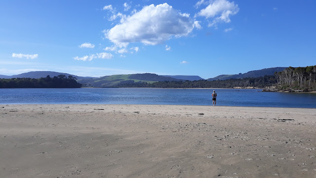 We couldn't see very much from our window this morning because of the heavy mist but we weren't in any hurry to leave so were quite happy to wait until it lifted. It was an easy drive out of Dunedin, taking a back road to the motorway, stopping at Mosgiel for fuel and further along at Waihola at a cafe for coffee and pikelets served with jam and cream...yum! Another gorgeous sunny day enabled us to sit outdoors in the sunshine and we had an interesting conversation with the lawnmower lady who sat with us while she drank her coffee. We then drove down to the Taieri River Mouth and had a wander around